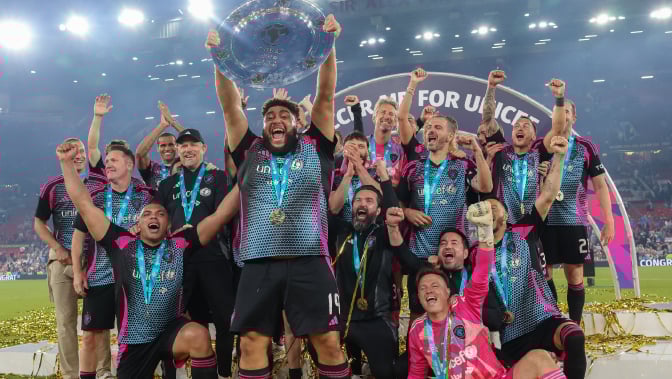 Created by Robbie Williams in 2006, Soccer Aid for UNICEF brings the nation together behind a common goal: to protect play for every child. On 15 June, England and the Soccer Aid World XI FC went head-to-head in the world’s biggest celebrity football match. Cheered on by passionate fans at Old Trafford and broadcast live on ITV1, ITVX and STV, Soccer Aid for UNICEF harnesses the power of football to support children around the world to grow up safe, healthy and able to play.
